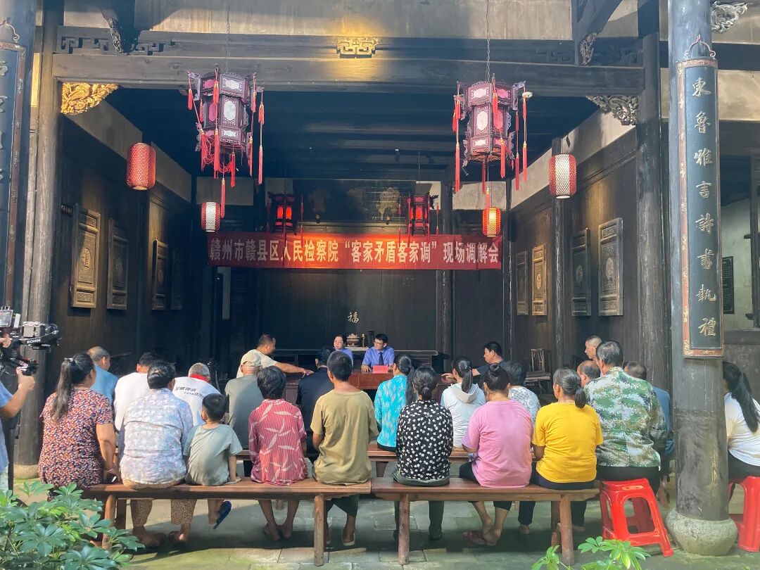 “有事到祠堂说,有理到祠堂讲,有纠纷到祠堂调。”在赣县,星罗棋布的客家祠堂是客家人“以和为贵”的精神家园。这里的一砖一瓦都镌刻着“睦宗族、和乡邻”的祖训,一杯清茶都承载着“相让有礼”的客家传统,成为“客乡检韵”化解矛盾的独特场域。